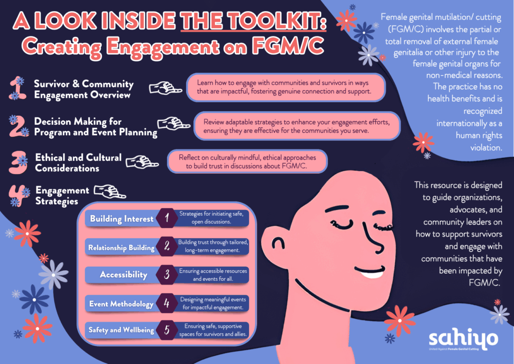 At Sahiyo, we believe that ending female genital mutilation/cutting (FGM/C) starts with survivors and communities leading the conversation. However, we recognize many organizations and advocates face challenges due to limited tools, strategies, and guidance for effectively engaging impacted communities.